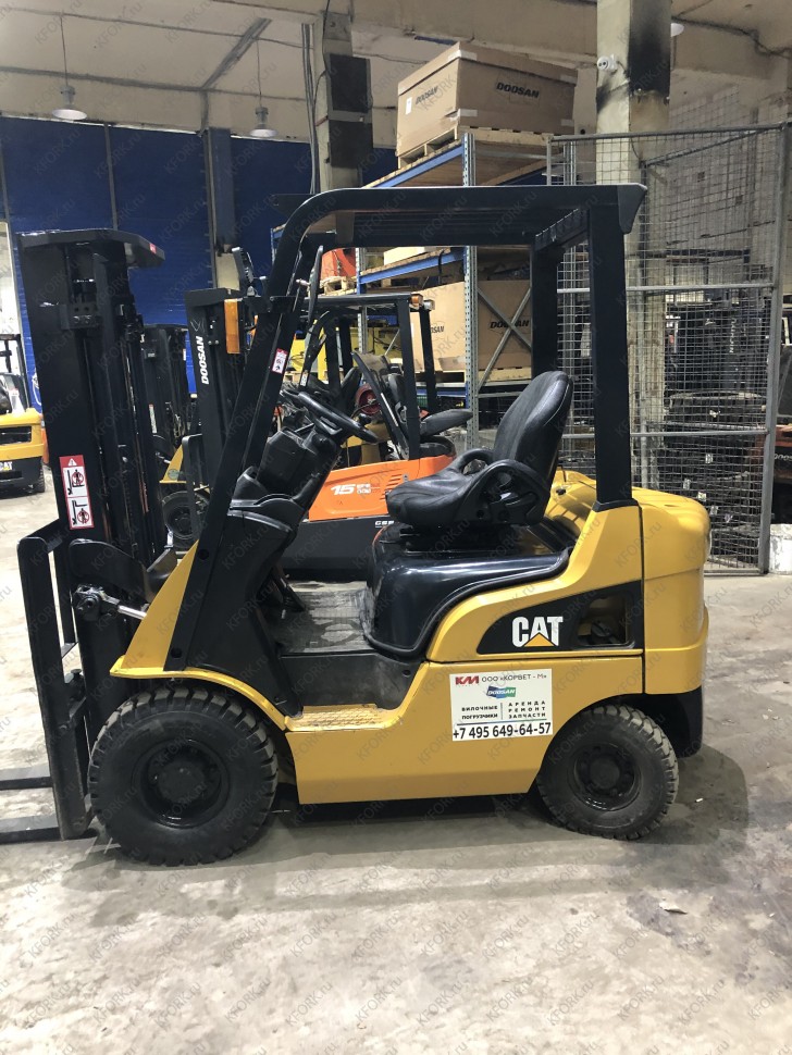 Дизельный автопогрузчик Caterpillar DP15NT с инвентарным номером КМ053 2012 года выпуска. Имеет грузоподъемность 1500 кг. Гарантия: 3 мес или 500 м/час.